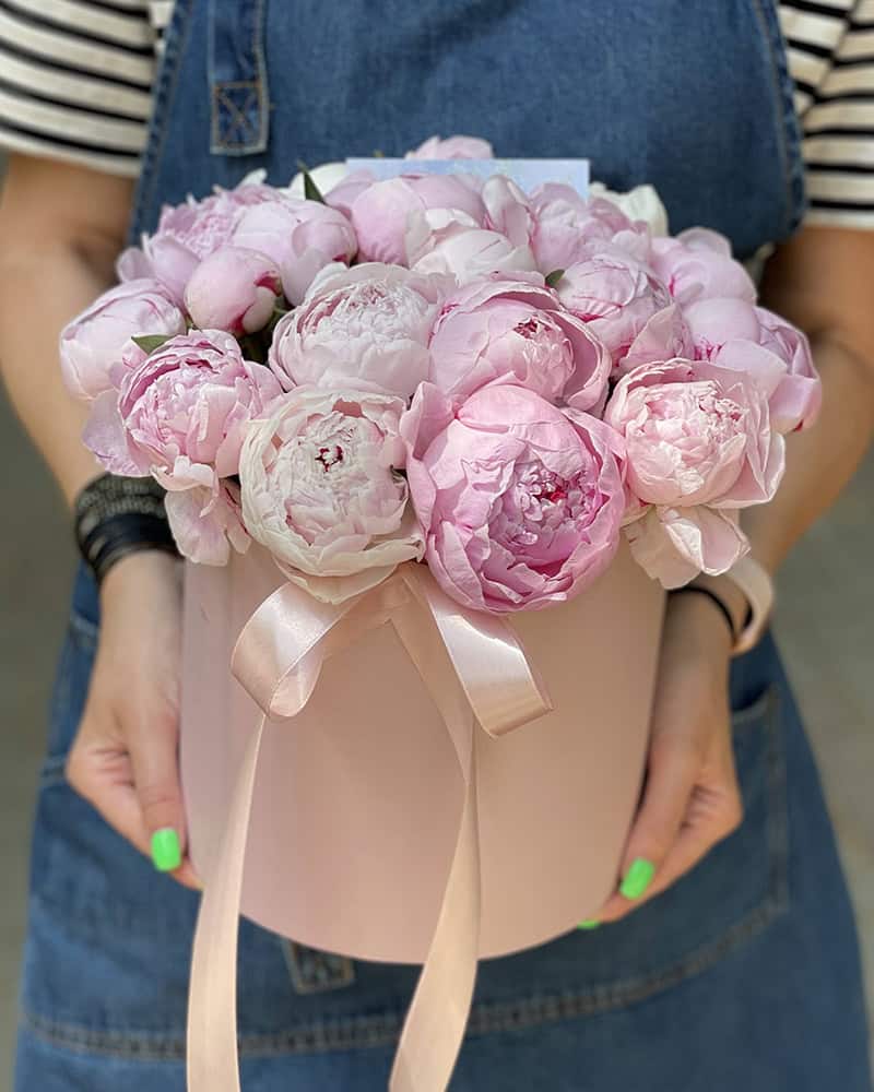 Главная страница » Магазин » Товары на праздник » Цветы » Цветы в коробке » 21 пион в коробке